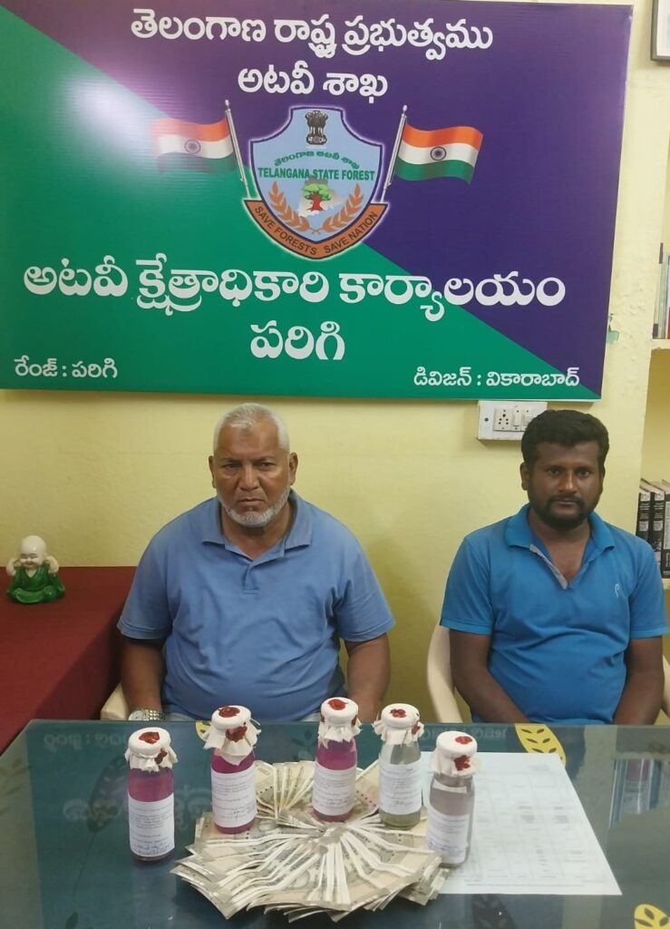 పరిగి రేంజ్ అటవీ ప్రాంతం నుండి బాటసింగారంలోని పండ్ల మార్కెట్కు సీతాఫలాలను రవాణా చేయడానికి ఫిర్యాదుదారుని వాహనాలకు కాలానుగుణంగా ఆన్లైన్ ట్రాన్సిట్ పర్మిట్లను జారీ చేయడానికి” ఫిర్యాదుధారుని నుండి రూ.40,000/- #లంచం తీసుకుంటూ తెలంగాణ #అనిశా అధికారులకు పట్టుబడిన వికారాబాద్ జిల్లాలోని పరిగి అటవీ రేంజ్ కార్యాలయంలోని “అటవీ రేంజ్ అధికారి – బొల్లుమల్ల సాయికుమార్, అటవీ సెక్షన్ అధికారి – మొహమ్మద్ మొయినుద్దీన్ మరియు డ్రైవర్ (పొరుగు సేవలు) – బాలనగరం బాలకృష్ణ.”