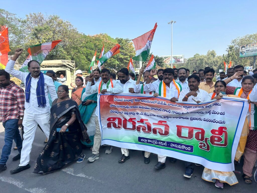 నేషనల్ హెరాల్డ్ కేసులో బీజేపీ ప్రభుత్వం రాజకీయ కక్షతో వ్యవహరిస్తోందని ఆరోపిస్తూ, హనుమకొండ జిల్లా కాంగ్రెస్ పార్టీ ఆధ్వర్యంలో గురువారం నిరసన ర్యాలీ నిర్వహించారు.