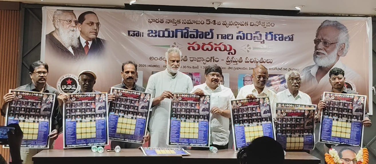 భారత నాస్తిక సమాజం 54వ వ్యవస్థాపక దినోత్సవం, భా.నా స వ్యవస్థాపకులు డాక్టర్ జయగోపాల్ రెండవ వర్ధంతి సందర్భంగా ఆంధ్రప్రదేశ్ రాష్ట్రం విశాఖపట్నం జిల్లా కేంద్ర పౌర గ్రంథాలయంలో రాజ్యాంగం ప్రస్తుత పరిస్థితులు అనే అంశంపై భా.నా.స జాతీయ సమన్వయకర్త జె రవి అధ్యక్షతన ఆదివారం జరిగిన సదస్సులో ఆయన పాల్గొని మాట్లాడారు. వేల సంవత్సరాలుగా భారతదేశంలోని మెజార్టీ ప్రజలను కులం, అంటరానితనం పేరుతో అణచివేసారని, బ్రాహ్మణీయ ఆధిపత్య పాలకులు మనుధర్మ శాస్త్రం పేరుతో దేశ మూలవాసి ప్రజలను విద్యకు, ఆస్తికి, అధికారానికి దూరం చేశారని, దేశంలో సగభాగమైన మహిళలను సైతం శూద్రుల లాగానే అణచివేశారని ఆ అణిచివేత కారణమైన మనుధర్మ శాస్త్రాన్ని 1927లో తగలబెట్టిన డాక్టర్ బాబాసాహెబ్ అంబేద్కర్ స్వాతంత్రానంతరం సమానత్వం, సౌభ్రాత్రుత్వంతో కూడిన రాజ్యాంగాన్ని అందించారని, ఎస్సీ ఎస్టీలకు విద్యా ఉద్యోగాలతో పాటు చట్టసభల్లో రిజర్వేషన్లు కల్పించారని అన్నారు. రాజ్యాంగం మెజార్టీ ప్రజలకు వ్యతిరేకంగా ఉందని పెరియార్ రాజ్యాంగాన్ని తగలబెట్టారని, స్వాతంత్రం వచ్చిన సందర్భంలో కూడా వెండి సంకెళ్లు పోయి బంగారు సంఖ్యల్లో పడ్డాయని పెరియార్ అన్నారు. పీడిత ప్రజల విముక్తి కోసం రాజ్యాంగంలో ఎన్ని హక్కులు పొందుపరిచినప్పటికీ ఆ రాజ్యాంగ అమలు దోపిడీ పాలకుల చేతిలో ఉండడం వల్ల రాజ్యాంగాన్ని వారికి అనుకూలంగా సవరణలు చేసుకుంటూ ప్రజల్ని మరింత అణిచివేస్తున్నారని, ప్రజాస్వామ్య రక్షణతోనే రాజ్యాంగ రక్షణ జరుగుతుందని ప్రజాస్వామ్య రక్షణ జరగాలంటే నైతిక విలువలు కలిగిన జయగోపాల్, పెరియార్ లాంటివాళ్ళు చట్టసభల్లోకి వెళ్లాలని మెజార్టీ ప్రజలైన ఓబీసీలు చట్టసభల బయట ఉండడం వల్ల ఎస్సీ, ఎస్టి ప్రజా ప్రతినిధులు చట్టసభల్లో ఆధిపత్య దోపిడి కులాల పార్టీలకు బానిసలుగా బతకాల్సి వస్తుందని అన్నారు. ఇంటింటికి రాజ్యాంగ చేర్చడం ద్వారానే ప్రజల్ని చైతన్య పరచి విలువల సమాజాన్ని నిర్మితం చేయొచ్చని అన్నారు.