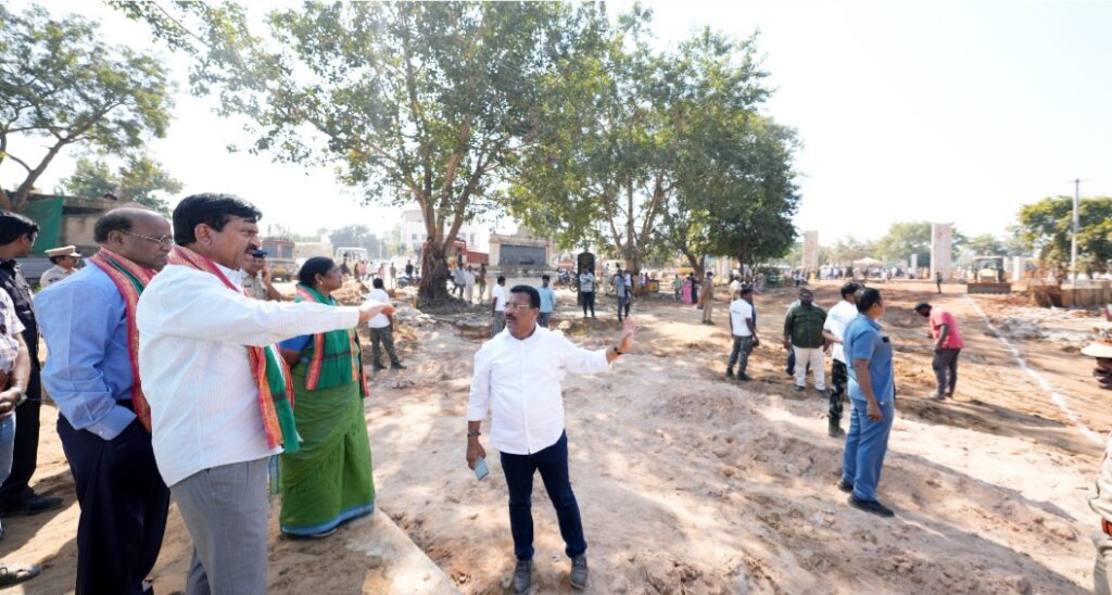 రాష్ట్ర గిరిజన సంక్షేమ శాఖ మంత్రి ధనసరి అనసూయ ( సీతక్క), ముఖ్యమంత్రి ప్రిన్సిపల్ సెక్రటరీ కెఎస్ శ్రీనివాసరాజుతో కలిసి శుక్రవారం ఎస్.ఎస్. తాడ్వాయి మండలం శ్రీ సమ్మక్క సారలమ్మ దేవాలయ గద్దెల పునరుద్ధరణ అభివృద్ధి పనులను, దేవాలయ ప్రాంగణంలోని పగిడిద్దరాజు, గోవిందరాజుల గద్దెల రాతి నిర్మాణాలను, ఆలయ ప్రాంగణ ఫ్లోరింగ్ పనులను, రాతి స్తంభాల స్థాపన నిర్మాణ పనులను,జంపన్న వాగు వద్ద పనులను క్షేత్ర స్థాయిలో పరిశీలించారు.ఈ సందర్భంగా మంత్రి పొంగులేటి మాట్లాడుతూ నిర్మాణ పనులలో నాణ్యత ప్రమాణాలను పాటిస్తూ పనులల్లో వేగం పెంచి త్వరితగతిన పూర్తి చేయాలని సంబంధిత అధికారులను, గుత్తేదారులను ఆదేశించారు.