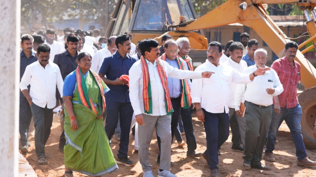 రాష్ట్ర గిరిజన సంక్షేమ శాఖ మంత్రి ధనసరి అనసూయ ( సీతక్క), ముఖ్యమంత్రి ప్రిన్సిపల్ సెక్రటరీ కెఎస్ శ్రీనివాసరాజుతో కలిసి శుక్రవారం ఎస్.ఎస్. తాడ్వాయి మండలం శ్రీ సమ్మక్క సారలమ్మ దేవాలయ గద్దెల పునరుద్ధరణ అభివృద్ధి పనులను, దేవాలయ ప్రాంగణంలోని పగిడిద్దరాజు, గోవిందరాజుల గద్దెల రాతి నిర్మాణాలను, ఆలయ ప్రాంగణ ఫ్లోరింగ్ పనులను, రాతి స్తంభాల స్థాపన నిర్మాణ పనులను,జంపన్న వాగు వద్ద పనులను క్షేత్ర స్థాయిలో పరిశీలించారు.ఈ సందర్భంగా మంత్రి పొంగులేటి మాట్లాడుతూ నిర్మాణ పనులలో నాణ్యత ప్రమాణాలను పాటిస్తూ పనులల్లో వేగం పెంచి త్వరితగతిన పూర్తి చేయాలని సంబంధిత అధికారులను, గుత్తేదారులను ఆదేశించారు.