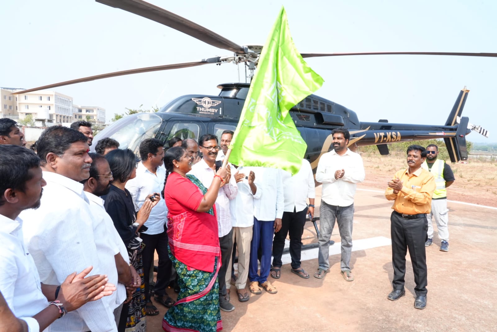 గురువారం జిల్లా కేంద్రానికి సమీపంలోని డిగ్రీ కళాశాల ఆవరణలో తంబి సంస్థవారు హెలికాప్టర్ సేవలను సద్వినియోగం చేసుకోవడానికి ఏర్పాటు చేసిన కార్యక్రమంలో రాష్ట్ర పంచాయతీ రాజ్, గ్రామీణాభివృద్ధి, గ్రామీణ నీటి సరఫరా, మహిళా శిశు సంక్షేమ శాఖ మంత్రి దనసరి అనసూయ సీతక్క పాల్గొని ప్రారంభించారు.