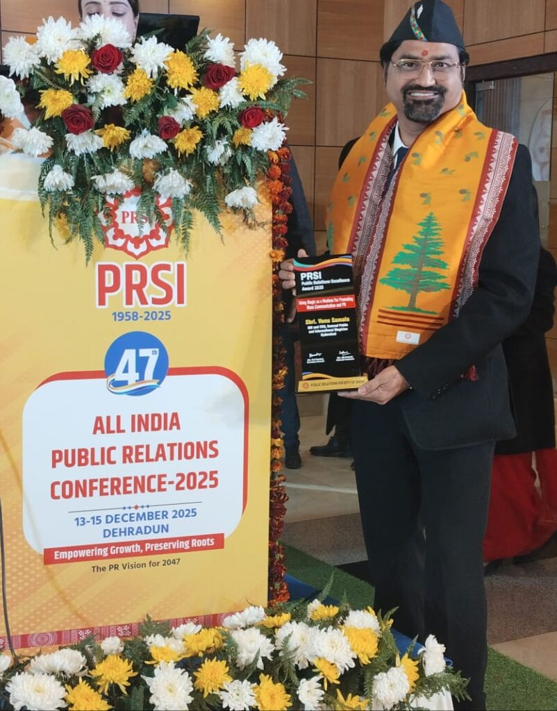 హైదరాబాద్కు చెందిన అంతర్జాతీయ ఖ్యాతిగాంచిన ఇంద్రజాలికుడు సామల వేణుకు “పబ్లిక్ రిలేషన్స్ ఎక్సలెన్స్ – 2025” అవార్డు లభించింది. డెహ్రాడూన్, ఉత్తరాఖండ్లో నిర్వహించిన 47వ జాతీయ ప్రజాసంబంధాల సదస్సులో ఆయన ఈ గౌరవం దక్కింది.