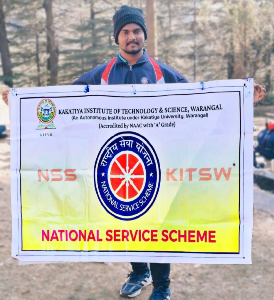 కాకతీయ ఇనిస్టిట్యూట్ ఆఫ్ టెక్నాలజీ అండ్ సైన్స్, వరంగల్ (KITSW)కి చెందిన ఎన్ఎస్ఎస్ వాలంటీర్ వి. సిద్ధార్థ (ఫైనల్ ఇయర్, బి.టెక్ – సిఎస్ఇ) నేషనల్ అడ్వెంచర్ క్యాంప్–2025ను విజయవంతంగా పూర్తి చేసి, జాతీయ స్థాయి ప్రశంస పత్రాన్ని అందుకున్నారు.