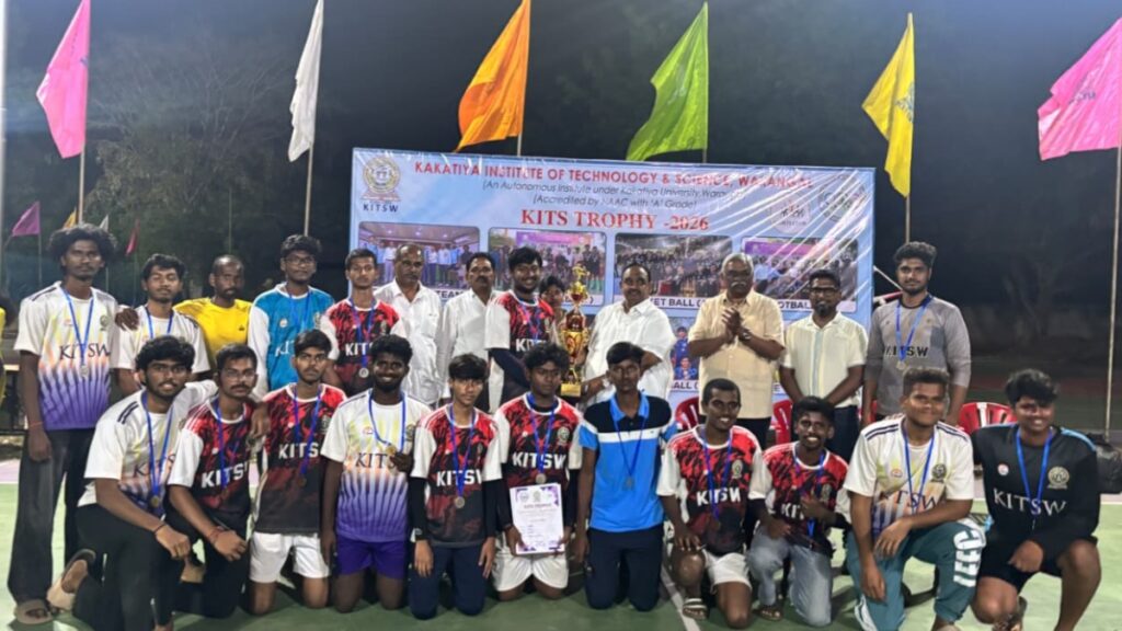 వరంగల్, మార్చి 16: Kakatiya Institute of Technology & Science Warangal (కిట్స్ డబ్ల్యూ) ప్లే గ్రౌండ్స్‌లో కిట్స్ ట్రోఫీ–2026 పురుషులు, మహిళల క్రీడా పోటీల ముగింపు కార్యక్రమం ఘనంగా నిర్వహించారు. మార్చి 14, 15 తేదీలలో నిర్వహించిన ఈ అంతర్ కళాశాల ఆహ్వానిత టోర్నమెంట్‌ను ఫిజికల్ ఎడ్యుకేషన్ విభాగం విజయవంతంగా నిర్వహించింది.