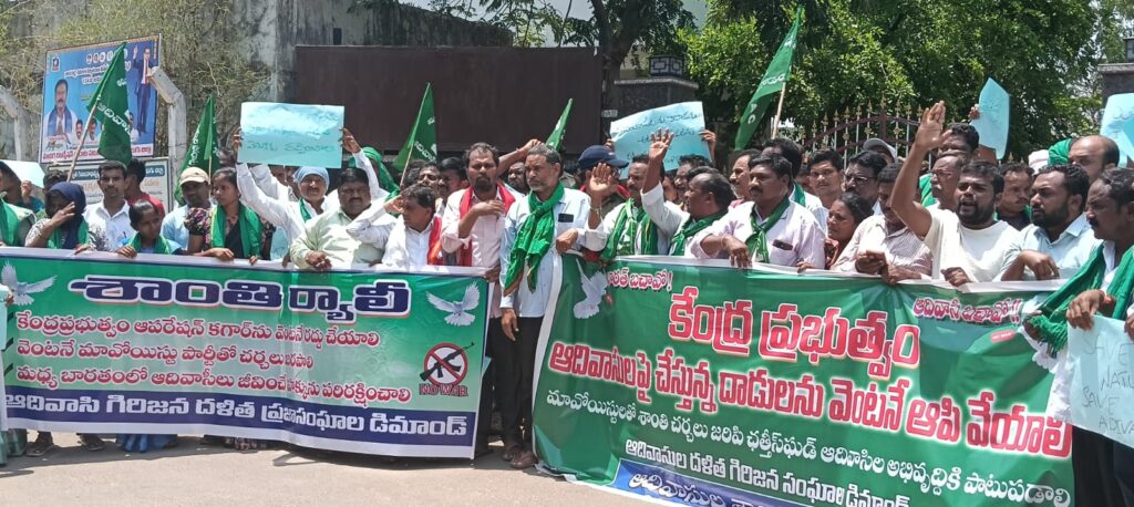 మావోయిస్టులపై దాడుల పేరుతో మధ్య భారతదేశంలోని ఆదివాసీ చట్టాలను ఉల్లంఘించి వేలాది మంది అమాయక ఆదివాసీలను చంపేశారని, కేంద్ర హోం శాఖ మంత్రి అమిత్ షా ఆపరేషన్ కగార్ పేరుతో మార్చి 2026 వరకు మావోయిస్టులను అంతమొందిస్తామని ప్రకటించి ఆదివాసీలపై మారణహోమాన్ని కొనసాగించడం దుర్మార్గమని పేర్కొన్నారు. భారతదేశాన్ని ఇతర దేశాల నుండి రక్షించడానికి నియమించబడిన మిలటరీని స్వంత ప్రజలను చంపడానికి ఉపయోగించడం కేంద్ర ప్రభుత్వ హేయమైన చర్య అని అన్నారు. మధ్య భారతంలోని కేంద్ర బలగాలను వెంటనే వెనక్కి తీసుకొని మావోస్టులతో శాంతి చర్చలు జరపాలని వారు డిమాండ్ చేశారు. కేంద్ర ప్రభుత్వం మావోయిస్టులతో చేయవలసిన శాంతి చర్చలకు రాష్ట్ర మంత్రి సీతక్క చొరవ తీసుకోవాలని విజ్ఞప్తి చేశారు.