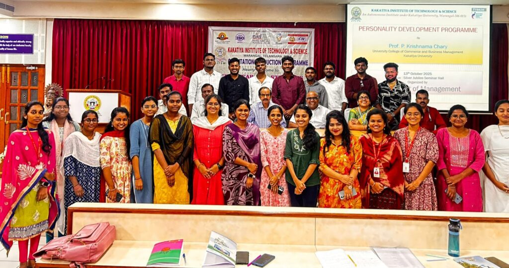 కాకతీయ ఇన్‌స్టిట్యూట్ ఆఫ్ టెక్నాలజీ అండ్ సైన్స్‌ (కేఐటీఎస్‌), వరంగల్‌ నిర్వహణ విభాగం (ఎంబీఏ) తొలి సంవత్సరం విద్యార్థుల కోసం 2025–26 విద్యా సంవత్సరానికి సంబంధించిన ఒరియంటేషన్‌ మరియు ఇండక్షన్‌ ప్రోగ్రాంను సోమవారం సిల్వర్ జూబిలీ సెమినార్ హాల్లో నిర్వహించారు.
