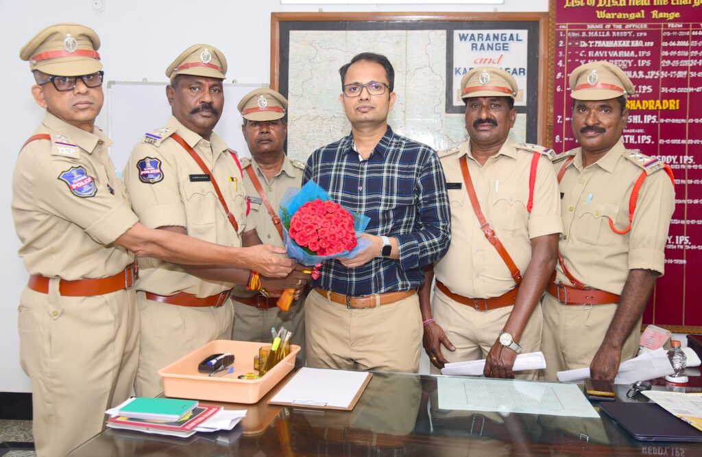 ప్రజలకు నిజాయితీతో సేవలందిస్తే సమాజంలో పోలీసుల పట్ల గౌరవ మర్యాదలు పెరుగుతాయని వరంగల్ పోలీస్ కమిషనర్ తెలియజేశారు. వరంగల్ పోలీస్ కమిషనరేట్ పరిధిలో ఎస్సైలుగా పదోన్నతి పొందిన శివ కుమార్, వి. నర్సయ్య, వి. చంద్రమౌళి, ఆర్. ఎస్. శర్మ, సాంబయ్యలు శుక్రవారం వరంగల్ పోలీస్ కమిషనర్ను మర్యాదపూర్వకంగా కలుసుకొని పుష్పగుష్టాలు అందజేశారు. ఈ సందర్భంగా కు పోలీస్ కమిషనర్ చేతుల మీదుగా పదోన్నతి పొందిన అధికారుల భుజాలపై నక్షత్రాలను అలంకరించి అభినందనలు తెలియజేసారు అనంతరం సీపీ మాట్లాడుతూ