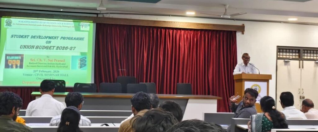 వరంగల్‌లోని కాకతీయ ఇన్‌స్టిట్యూట్ ఆఫ్ టెక్నాలజీ అండ్ సైన్స్ (కిట్స్) లోని ఎంబీఏ (మేనేజ్‌మెంట్) విభాగం ఆధ్వర్యంలో “యూనియన్ బడ్జెట్ 2026–27” పై సెమినార్‌ను గురువారం సిల్వర్ జూబ్లీ సెమినార్ హాల్‌లో నిర్వహించారు.