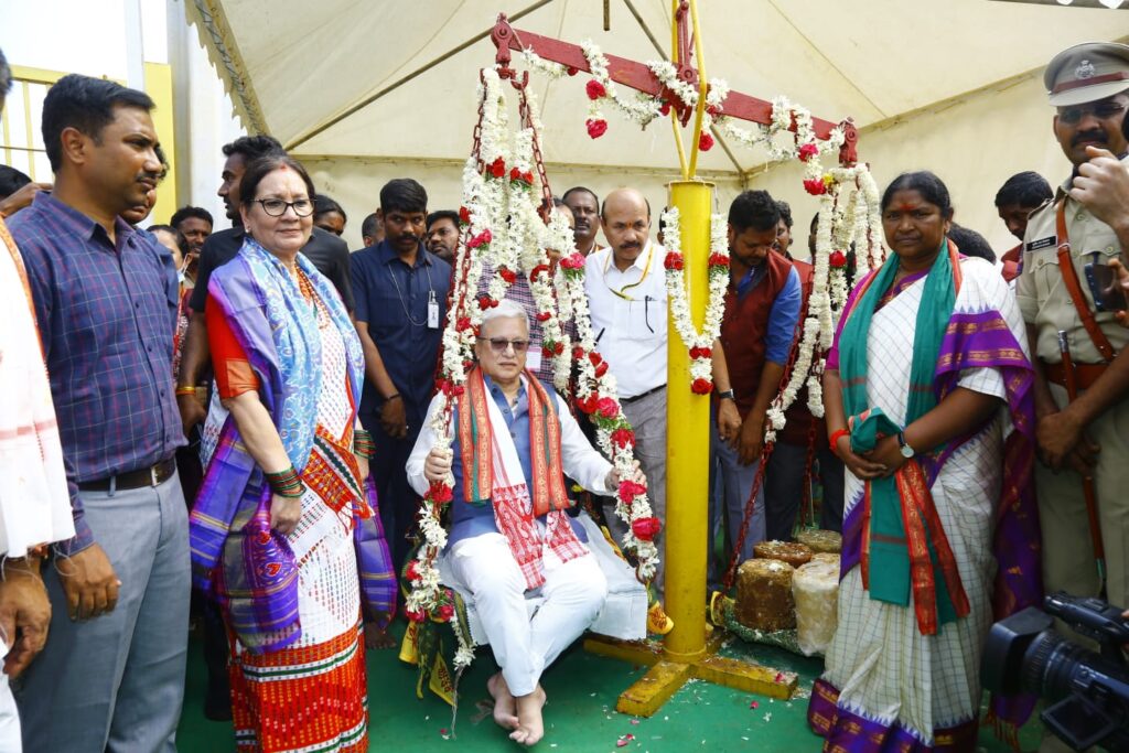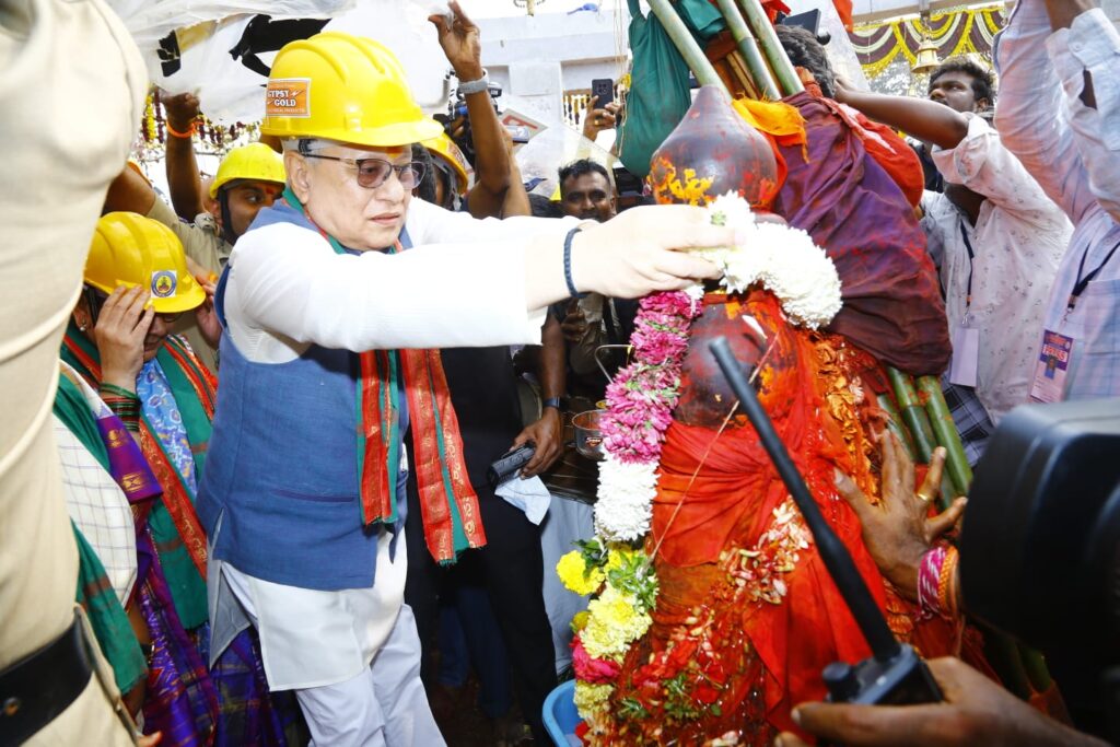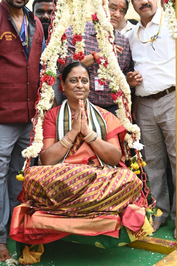 పొలిటికల్ ఎకనామిక్ అడ్వైజర్ నళిని రఘురాం, రాష్ట్ర జైళ్ల శాఖ డీజీ సౌమ్య మిశ్రా అమ్మ వార్లకు మొక్కలు చెల్లించారు.
