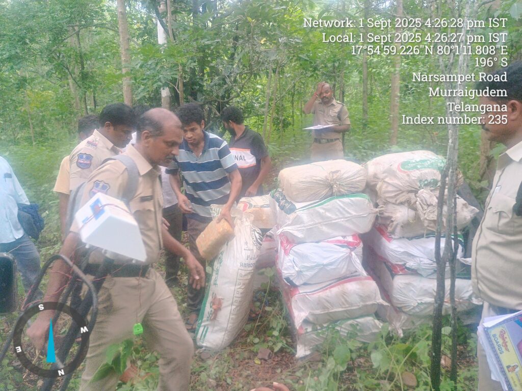 సమాచారం అందుకున్న వెంటనే డ్రగ్స్ కంట్రోల్ టీం ఖానాపూర్ ఎస్.ఐ. సిబ్బందితో కలిసి అక్కడికి చేరుకున్నారు. అక్కడ నలుగురు వ్యక్తులు సంచులు మోస్తుండగా పట్టుబడ్డారు.