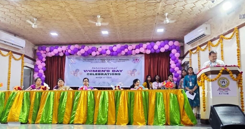 Kakatiya Institute of Technology & Science Warangal (కిట్స్ వరంగల్) మహిళా సాధికారత సెల్ ఆధ్వర్యంలో మార్చి 14, 2026న క్యాంపస్లోని ఆడిటోరియం (ఎన్ఎల్ఆర్ షెడ్)లో అంతర్జాతీయ మహిళా దినోత్సవాన్ని ఘనంగా నిర్వహించారు.